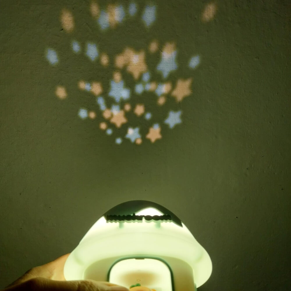 2. a teljes házkó világít és tetején a kis csillagok a plafonra vetítődnek