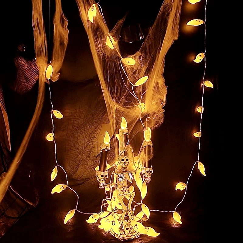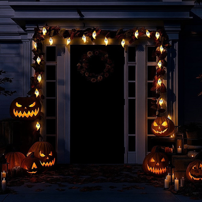 A füzéren 10 darab kis szellem figura van, mindegyik kb. 5 cm × 2,5 cm méretű, így egyaránt alkalmas beltéri dekorációnak és fedett kültérre is. Melegfehér LED fényekkel világít, ami kellemes, barátságos fényt ad, nem vakít, de jól látható esti dekorációként.