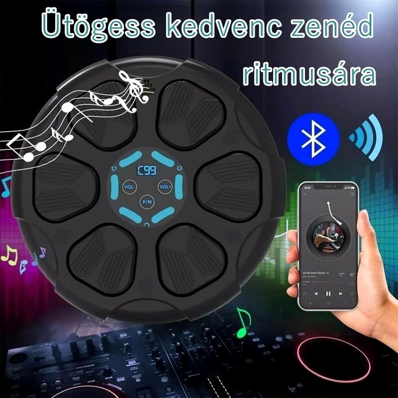 A hangerőt hoszabb nyomással, a ritmust érintéssel állíthatod.