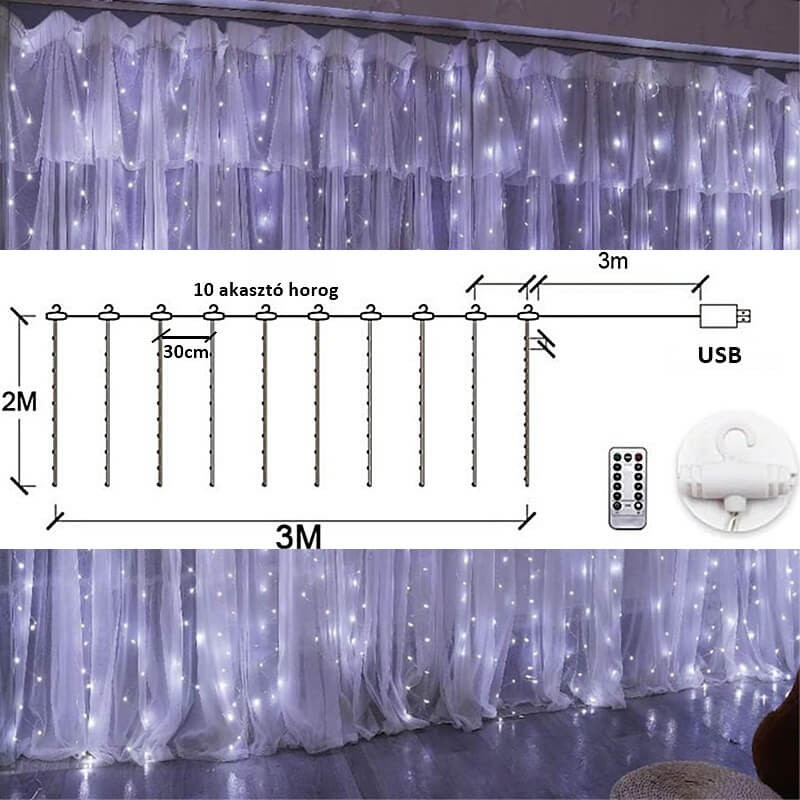 Időzítés és automatizálás lehetősége: Használhatsz külső időzítőt vagy konnektoros időzítőt, hogy a fényfüggöny csak a kívánt időszakokban világítson — energiatakarékosság és kényelmi szempontból is előnyös.