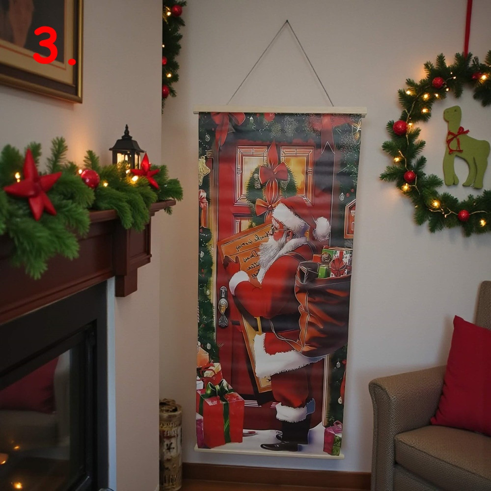 Karácsonyi dekorációs zászló / függöny mérete 96 × 40 cm — ideális ajtóra vagy ablakra