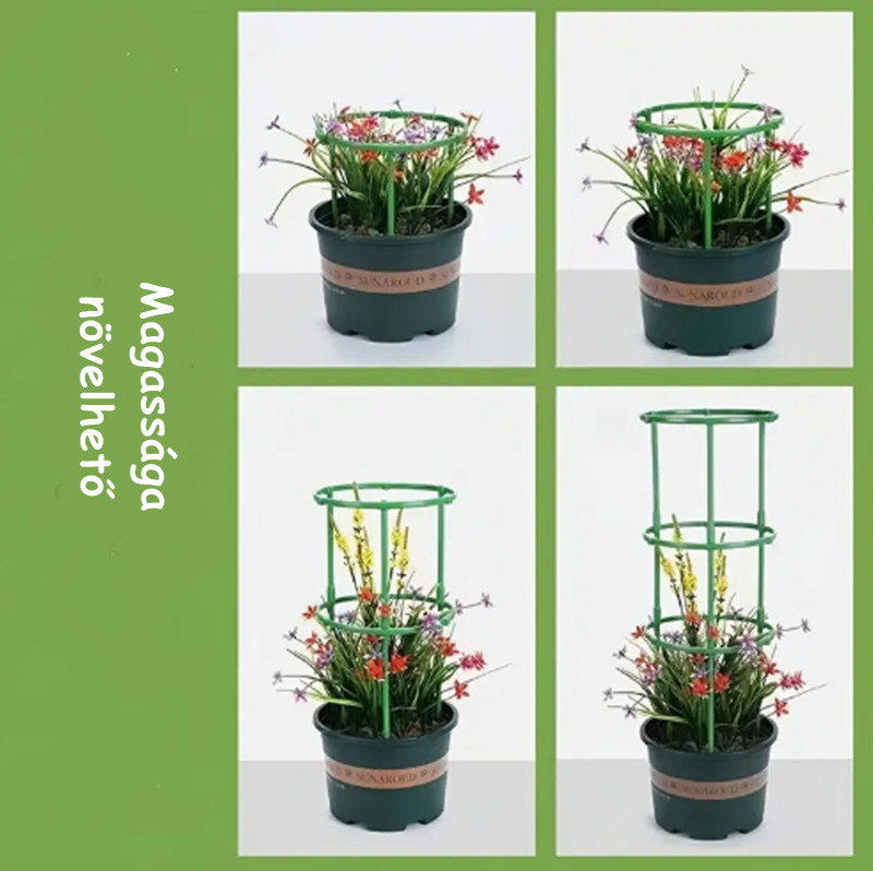 Növényeinknek a növekedési fázisokban különböző magasságú támaszra van szüksége. Ebben lesz segítségedre ez a virágtartó gyűrű, mely 3 magasságban állítható.